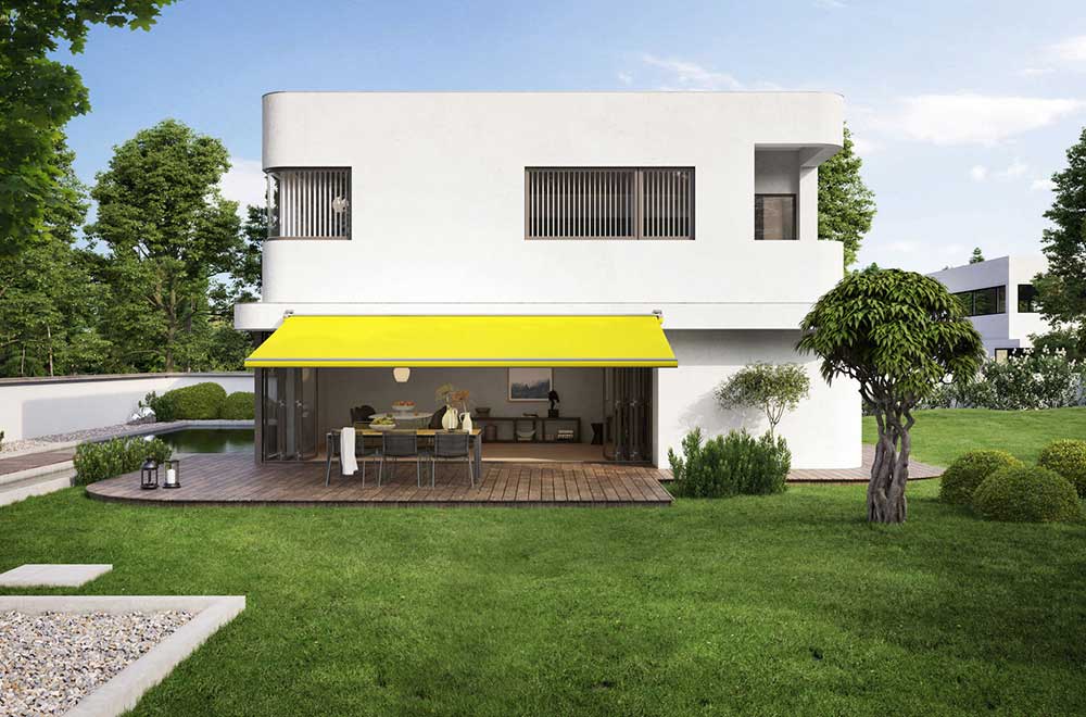 Geschlossen besticht die Markise mit ihrer harmonischen Optik und geöffnet bringt sie ihre technischen Werte zur vollen Entfaltung. Dabei überzeugt die innovative Designmarkise nachhaltig mit einem beeindruckendem Preis-Leistungsverhältnis.