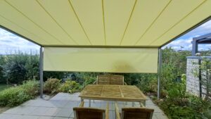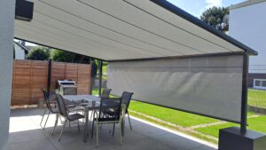 Der Vorteil von Pergola Markisen gegenüber Gelenkarmmarkisen ist die wesentlich besseren Windstabilität durch die Konstruktion.