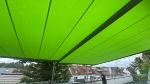 Je nach Modell können bis zu 7 Meter Ausfall realisiert werden. Es können auch mehrere Felder nebeneinander realisiert werden, sodass im ganzen eine enorm große Fläche beschattet werden kann.